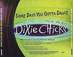 "Some Days You Gotta Dance" is a song written by Troy Johnson and Marshall Morgan, and recorded by American country music group Dixie Chicks. It was released in September 2001 as the eighth and final single from their album Fly. The song peaked at #7 on the Billboard Hot Country Singles & Tracks chart in March 2002.[1] "Some Days You Gotta Dance" was previously recorded by Keith Urban's short-lived band The Ranch, in 1997 on their sole studio album. Urban plays guitar on the Dixie Chicks' rendition.[2]