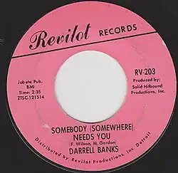 Darrell Banks released a version titled "Somebody (Somewhere) Needs You" on Revilot Records in September 1966. His record reached No. 55 on the Billboard Hot 100 and No. 34 on the R&B chart. Reviewing the single, Billboard (October 1, 1966) wrote: "Moving is the word for the new Darrell Banks disk and there's no holding it back. Should be his second smash!"[4]