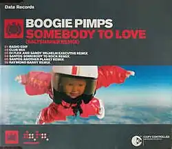 In December 2001, Mark J. Klak and Mirko Jacob of Boogie Pimps decided to cover the song after watching the 1998 film Fear and Loathing in Las Vegas, in which "Somebody to Love" is featured. The band's result initially failed to attract attention from German record labels, but the song soon became popular via underground white label releases.[25] It was then picked up by German label Superstar Recordings and released as an official single on April 7, 2003.[26] In the United Kingdom, it was released on January 5, 2004, while in Australia, it was issued as a CD single on January 26, 2004.[27][28]