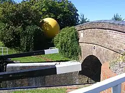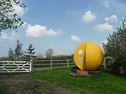 Aware of the inadequacies of printed pictures of the Solar System, the inventor Pip Youngman designed the Space Walk as a way of challenging people's perceptions of space and experiencing the vastness of the Solar System.[1] The model is built to a scale of 1:530,000,000,[2] meaning that one millimetre on the model equates to 530 kilometres. The Sun is sited at Higher Maunsel Lock, and one set of planets is installed in each direction along the canal towards Taunton and Bridgwater; the distance between the Sun and each model of Pluto being 11 kilometres (6.8 mi).[1] For less hardy walkers, the inner planets are within 430 metres (1,410 ft) of the Sun, and near to the Maunsel Canal Centre (and tea shop) at Lower Maunsel Lock, where a more detailed leaflet about the model is available.[3]