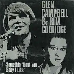"Somethin' 'Bout You Baby I Like" is a popular song written by guitarist Richard Supa in the early 1970s. The version by Tom Jones reached No. 36 in the UK in 1974.[1] Glen Campbell and Rita Coolidge reached No. 42 in the US with their recording of the song in 1980.[2]