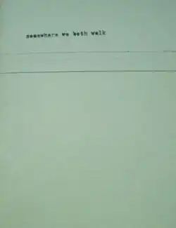 Somewhere We Both Walk is a second self-released work from Maine's Nesey Gallons. It was put together in a limited edition, CD-R format of Eyes & Eyes & Eyes Ago with homemade packaging along with Two Bicycles and includes a booklet of something written by Gallons herself. It is "a cdr of a phase piece i recorded in brooklyn with a little booklet of a "love story" written at the same time. im the only one who plays on it (bowed things out of phase) but it was recorded in the apartment where julian and i lived when a lot of fine work was done on clouds and tornadoes. its meant to be played impossibly loud through speakers while reading the "story". i hope this clarifies things a bit."[1]