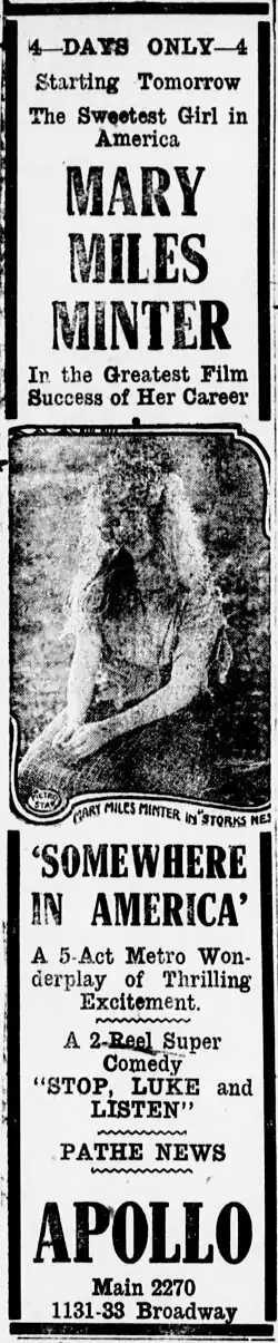 - ^ "Somewhere in America". Wid's Films and Film Folk. 3 (31). New York City: Wid's Films and Film Folk, Inc.: [1] August 2, 1917.