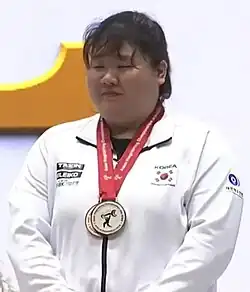 Son Young-hee (Korean: 손영희; RR: Son Yeong-hui, born 24 April 1993) is a South Korean weightlifter. She competed in the women's +75 kg event at the 2016 Summer Olympics in Rio de Janeiro, Brazil.[1] She won the gold medal in the women's +87 kg event at the 2021 World Weightlifting Championships held in Tashkent, Uzbekistan.[2][3]