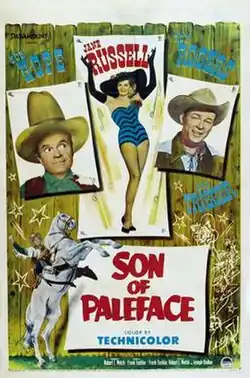 Son of Paleface is a 1952 American comedy Western film directed by Frank Tashlin and starring Bob Hope, Jane Russell, and Roy Rogers. The film is a sequel to The Paleface (1948). Written by Tashlin, Joseph Quillan, and Robert L. Welch, the film is about a man who returns home to claim his father's gold, which is nowhere to be found. Son of Paleface was released in the United States by Paramount Pictures on July 14, 1952.