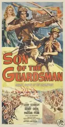Son of the Guardsman is based on the Robin Hood legends, although it does not include Robin Hood, just the period and Sherwood Forest setting.[1] The serial was made to use costumes and sets left over from feature films, amortising the costs of all the productions involved.[2] Costume drama serials were rare productions for any producer.[2] The serial's subtle was "Gallant Fighter of the Greenwood."