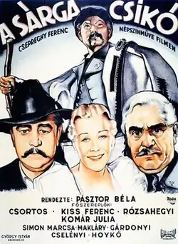 Son of the Pusta (Hungarian: Sárga csikó) is a 1936 Hungarian drama film directed by Béla Pásztor and starring Gyula Csortos, Ferenc Kiss and Júlia Komár.[1][2] It was shot at the Hunnia Studios in Budapest. The film's sets were designed by the art director Márton Vincze.