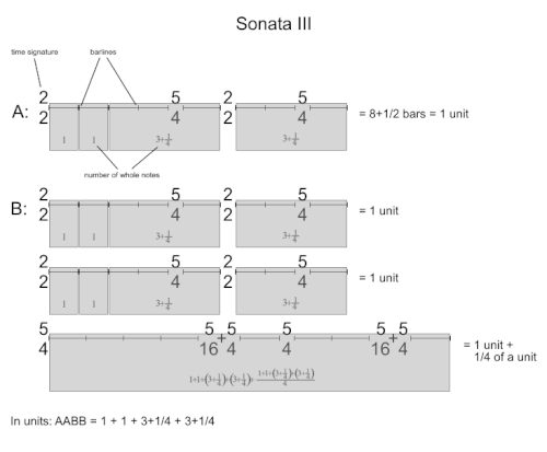 | Sonata III | AABB | 1, 1, 31⁄4, 31⁄4 | 81⁄2 |