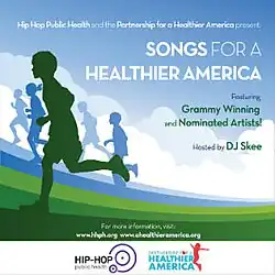 Songs for a Healthier America is a 19-track compilation album by various artists, released in 2013 as a collaborative project by the Partnership for a Healthier America, whose honorary chair is First Lady Michelle Obama, and Hip Hop Public Health.[1][2] The album encourages children to exercise and make healthy food choices. Guest vocalists include Ashanti, Doug E. Fresh, Monifah, Run DMC and Jordin Sparks; other contributors include Ariana Grande, Blink-182's Travis Barker and Matisyahu, performing as Salad Bar, Nils Lofgren of Bruce Springsteen's E Street Band, and Iman Shumpert Mixed and mastered by Roey Shamir for INFX Productions (INFX.net), at AREA51NYC Recording Studios.[1][3]