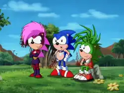 While escaping from Sleet and Dingo, Sonic, Sonia, and Manic come across Lake Valley Resort. Lake Valley Resort is led by Stripes, who believes that making deals with Robotnik is safer than fighting Robotnik. When Robotnik asks if there are any new people staying at Lake Valley Resort, he reveals that Sonic and Manic are there, leaving out Sonia. | ||||||