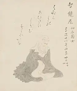 Shiba Sonome (1664–1726, 斯波 園女) was a Japanese zen poet. She was an acquaintance and friend of Matsuo Bashō, and their correspondence is a treasure of zen and haiku history. On a final visit in 1694, Bashō paid homage to her in a haiku, hiragiku no me ni tatete miru chiri mo nashi, 白菊の目に立てゝ見る塵もなし, in the eye of a white chrysanthemum, there is not a speck of dust.[1]