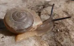 Sonorella neglecta is a terrestrial pulmonate gastropod mollusc in the subfamily Helminthoglyptinae. Sonorella is a genus of large land snails consisting of over 80 species, with new ones continuing to be described.[2][3] The shells typically differ only rather subtly, but proportions of the genitalia differentiate species. The genus is distributed in the southwestern USA (Arizona, New Mexico and NW Texas) and northern Mexico, with individual species often restricted to a single mountain massif ("sky island") or to a small part of one.[4][3] Sonorella neglecta is such a narrow-range endemic from the Chiricahua Mountains. Its official vernacular name is the Portal Talussnail.[5]