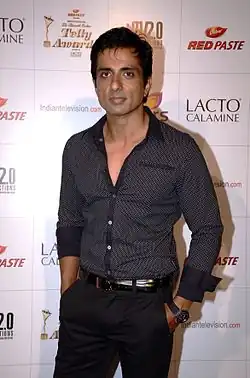 Sonu Sood (born 30 July 1973)[2][3] is an Indian actor, film producer, model, humanitarian, and philanthropist who works predominantly in Hindi, Telugu and Tamil films. He is known for his performances as the negative lead in most of his films and for his humanitarian work, especially during the COVID-19 pandemic.