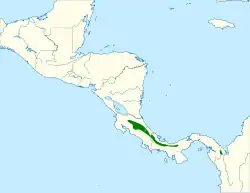 It is found in the Talamancan montane forests and the Serranía del Darién. Its natural habitat is subtropical or tropical moist montane forests.