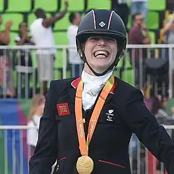 Sophie Margaret Christiansen (born 14 November 1987) is an English former equestrian who competed in four successive Paralympic Games.[1][2] In 2012 and 2016 she gained three gold medals at the Paralympics.[3] In 2008 she won two gold medals and a silver at the Beijing Paralympics whilst studying for a master's degree in mathematics at Royal Holloway, University of London. She works as a software developer at investment bank Goldman Sachs and as a disability campaigner. She qualified for the postponed 2020 Summer Paralympics but had to drop out due to her horse not being fit.[4]