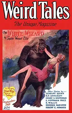 Ellis's stories appeared mostly in "pulp" magazines,[2][3] and included "The Unseen Seventh" (The Thrill Book 1919), "The Lily Garden" (Mystery Stories 1928; republished in Phantom 1958), "The White Wizard" (Weird Tales 1929), "The Spirit in the Garden" (Ghost Stories 1929), "Does Death Guard This Viking Hoard?" (True Strange Stories 1929), "Creatures of the Light" (Astounding 1930), "Slaves of the Dust" (Astounding 1930), "The Shadow World" (Amazing Stories 1932), "White Lady" (Strange Tales 1933), and "The Dwellers in the House" (Weird Tales 1933).