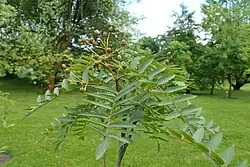 Sorbus rosea is a species of rowan native to Kashmir in Pakistan.[2] It is a small tree with large pink flowers and berries, dark green leaves turning to red in the Autumn, and reddish bark with silver patches.[3] It has gained the Royal Horticultural Society's Award of Garden Merit as an ornamental.[4]