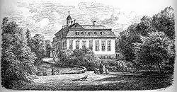 Count Carl von Ahlefeldt acquired the estate in 1702. He commissioned the architect François Dieussart to build a new summer residence at the site and renamed it Sorgenfri. The building, a half-timbered, three-winged complex in Baroque style, was completed in 1705. The central wing contained a banquet hall with double high ceilings. Passage between the two residential side wings was therefore only possible at the ground floor.[2]
