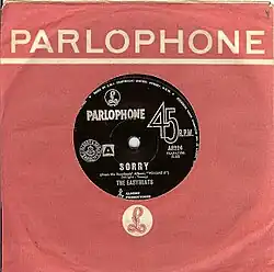 "Sorry" is a 1966 song and single by Australian rock group The Easybeats, which was written by band members George Young and Stevie Wright. It peaked at #1 on the Australian Go-Set's National Top 40 in mid November 1966. It remained at #1 on the Australian Charts for 2 weeks in November 1966.[1]