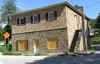 The building is two levels with stone veneer facing. The building is located on a former 250 acre slave plantation once owned by the Botterill Family. It is inset in a graded fork of Old Scaggsville Road and All Saint's road, serving as the primary entrance to the mill town of Laurel, Maryland on the other side of the Patuxent River. A bridge served as the community link to the Avondale Mill and main street connecting to the historic B&O railroad stop. The building served as a bar, grocery store, fueling station, and hair salon. Its last commercial owners were the Souder Construction Company. In December 2014, Howard County purchased the building for $325,000 holding a community meeting on its condition. In December 2015, the county held a meeting announcing its intention to demolish the building. The county did not publish a historical review, but claimed a historian had cleared the property because of its "mishmash" architecture. [1][2] [3] [4]