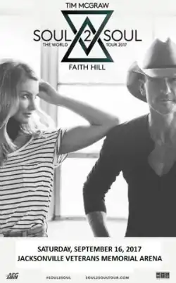 The Soul2Soul: The World Tour is the third co-headlining tour by American country music recording artists, and husband and wife, Tim McGraw and Faith Hill. It marked the first time the duo have toured together since 2007. It began on April 7, 2017, in New Orleans. Performances consist of a setlist of duets between the couple and solos. The first leg of the tour played seventy shows, and as of December 11, 2017, every show was sold out, and grossed over 79 million dollars. According to Pollstar's 2017 Mid-Year report, it was ranked the 24th best tour.[1]