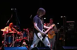 ![]() Soul Asylum performing at a 2010 concert in Urbana, Illinois. From left to right: Michael Bland (drums), Dave Pirner (vocals, rhythm guitar), and Dan Murphy (lead guitar). | |