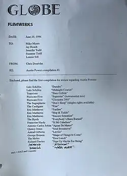 Song Ideas Compilation #1 for Austin Powers, 1996 - Canadian comedian Mike Myers used the song as the theme tune for his James Bond parody film series Austin Powers. The song was recommended to Myers by KCRW DJ Chris Douridas, a music consultant on the film series. Myers had a personal connection to the song, having been a fan of Definition as a child.[7]