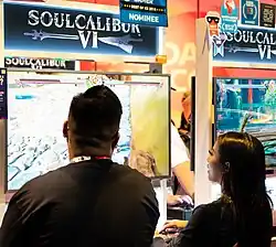 Soulcalibur VI was announced during The Game Awards 2017.[29] Development on the game began over three years prior.[30] Producer Motohiro Okubo described the game as a celebration of the franchise's 20th anniversary.[31][32] Bandai Namco placed a greater emphasis on story elements compared to previous games in the series.[33][34] The game utilizes Unreal Engine 4, the same engine used in Bandai Namco's previous fighting game, Tekken 7. According to Okubo, the title's code name was "Luxor" to reflect the team's intention of creating a brighter experience akin to the original Soulcalibur. Additional mechanics were introduced to assist players with the game's learning curve.[32]