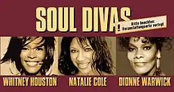 The Soul Divas Tour was a co-headlining concert tour by American recording artists Dionne Warwick, Natalie Cole and Whitney Houston.[1] The tour was a one-month trek that started on July 7, in Hamburg, Germany. The tour was created and initiated by Felix Scheuerpflug and the team of the Welldone Agency. The exclusive promoter was Tchibo. Tickets were available on Tchibo.de only. Houston, who was featured as the main headliner, also toured Thailand, Hong Kong, and China without Cole and Warwick, adding a few more dates through late July.[2]