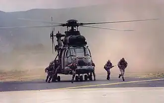 120 Squadron mainly operated the Cactus missile system operationally in platoons from 1973 until the late 1980s with each platoon consisting of one Acquisition and Co-ordination Unit (ACU) and two or three firing units, with a battery having two platoons.[52] 121 Squadron, 123 Squadron and later 129 Squadron mainly operated the Tigercat mobile surface-to-air missile system. In South African service it was given the name "Hilda". 123 Squadron was deployed for Operation Savannah in 1975 to provide air defence for Air Force Base Grootfontein in South-West Africa. 129 Squadron was deployed to Air Force Base Ondangwa for the remainder of the Border War to provide air defence for the logistics base and airfield there, as it was an important staging area for the South African Defence Force for their operations in neighbouring Angola.[53][54]
