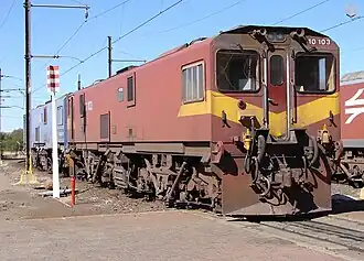 In 1989 and 1990, the South African Railways placed twenty-five Class 10E2 electric locomotives with a Co-Co wheel arrangement in mainline service.[1][2]