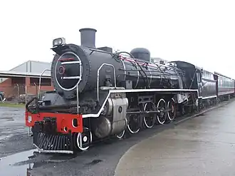 The Poppet valves made the Class 19C a very free-running locomotive, although it required special maintenance techniques. As a result, the whole class was allocated to the Western Cape during the Second World War and based at the Paardeneiland shed in Cape Town. From here, they worked on branch lines such as those from Cape Town to Saldanha, along the long branch line via Klawer to Bitterfontein, and across Sir Lowry's Pass to Caledon, Bredasdorp and Protem in the Overberg.[3][8]