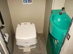 - Toilet, with a porta-potty and hand washbasin.[6]