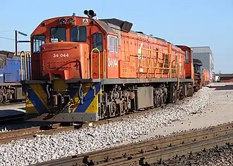 The Class 34-000 type GE U26C diesel-electric locomotive of the South African Railways (SAR) was designed by General Electric (GE). The first three locomotives were built by GE and imported, numbered in the range from 34-001 to 34-003, while the remainder were built by the South African General Electric-Dorman Long Locomotive Group (SA GE-DL, later Dorbyl) and numbered in the range from 34-004 to 34-125. The 125 locomotives entered service between July 1971 and March 1973.[1][2][3]