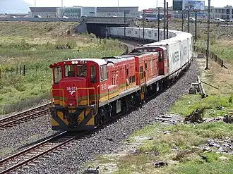 The Class 36-000 type GE SG10B diesel-electric locomotive was designed by General Electric (GE) and built for the South African Railways (SAR) in three batches by the South African General Electric-Dorman Long Locomotive Group (SA GE-DL, later Dorbyl). The first one hundred locomotives were delivered between June 1975 and September 1978, numbered in the range from 36-001 to 36-100. These were followed in 1981 by two batches of twenty and four locomotives respectively, numbered in the ranges from 36-101 to 36-120 and 36-121 to 36-124 respectively.[1][2][3]