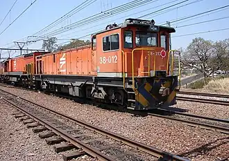 Between 1992 and 1994, Spoornet placed fifty Class 38-000 dual mode locomotives in service. They are still the only dual powered electro-diesel locomotives in use by Transnet Freight Rail, capable of running either on 3 kV DC electricity off the catenary or on diesel fuel alone.[1]