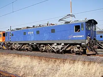 The 25 kV AC Class 7E3, Series 1 electric locomotive was designed for the South African Railways (SAR) by Hitachi and built in South Africa by Dorbyl, who also supplied the mechanical components. Sixty locomotives were delivered by Dorbyl in 1983 and 1984, numbered in the range from E7216 to E7275.[1][4]
