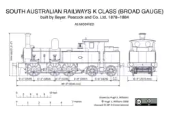 - ^ a b c d e f g h Williams, Hugh (2008). "The broad gauge K class locomotives of the South Australian Railways". Proceedings of the 2008 convention. Modelling the Railways of South Australia. Adelaide. pp. 159–163.