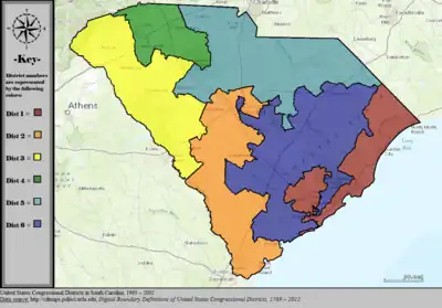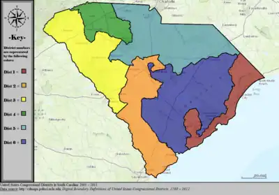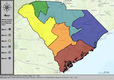 Table of United States congressional district boundary maps in the State of South Carolina, presented chronologically.[14] All redistricting events that took place in South Carolina between 1973 and 2013 are shown.