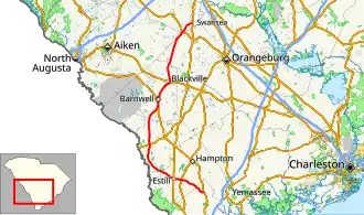 The entire route is in Orangeburg County.