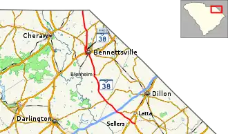 - ^ "Overview map of SC 38 Bus. (Bennettsville)" (Map). Google Maps. Retrieved February 14, 2018.