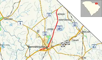 - ^ "Overview map of SC 385 Conn. (Bennettsville)" (Map). Google Maps. Retrieved October 4, 2020.