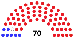 House political groups | Republican (64) Democratic (6) Vacant (0) |