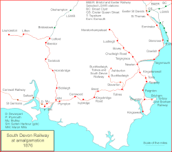 Stations opened after the SDR was absorbed by the GWR in 1876 are shown in italic.[1][36][37][35]