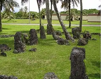 The South Finegayan Latte Stone Park is a small public park and archaeological site at 74 Golden Shower Lane in Dededo, Guam. Located in the United States Navy housing area known as Finegayan, it encompasses the remains of a latte stone house site, which are the only remnants of a once-extensive Chamorro village in the area. Radiocarbon dating and other evidence place the occupation period at this site at c. 1700, and for only a relatively short period of time (about 100 years).[2]