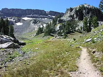 The South Fork Cascade Canyon Trail is a 5.6-mile (9.0 km) long hiking trail in Grand Teton National Park in the U.S. state of Wyoming.[1] The trail begins at the Forks of Cascade Canyon and extends to Hurricane Pass. A short connector trail just before Hurricane Pass leads to Schoolroom Glacier.[2] From the Forks of Cascade Canyon and most of the way through South Cascade Canyon, backcountry camping is allowed with a permit.[3] The South Fork Cascade Canyon Trail is also part of the Teton Crest Trail its entire length and to the south beyond Hurricane Pass lies Alaska Basin.