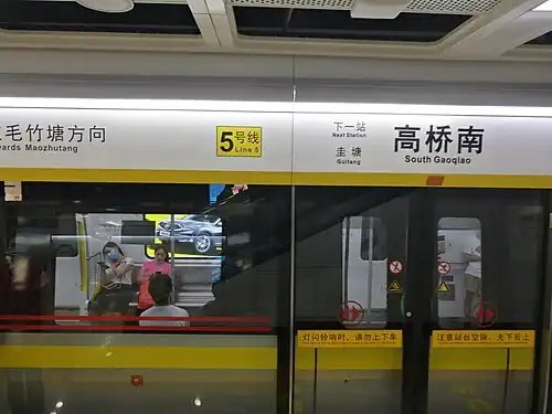 2. ^ Chen Yuehong (陈月红) (27 June 2020). 6月28日上午,长沙地铁3号线、5号线将载客试运营. hunan.voc.com.cn (in Chinese). Retrieved 3 May 2021.
