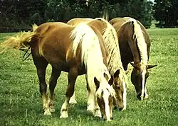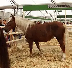 The South German Coldblood, German: Süddeutsches Kaltblut, is a breed of draught horse from southern Germany. It is distributed mainly in Bavaria. It is the most numerous of the four principal German draught horse breeds – the others being the Black Forest Horse, the Rhenish German Coldblood and the Schleswig Coldblood – and is the only one not listed as endangered by the Food and Agriculture Organization of the United Nations or by the Gesellschaft zur Erhaltung alter und gefährdeter Haustierrassen, the German national association for the conservation of historic and endangered domestic animal breeds.[4]