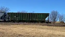 The last hopper car on the South Kansas & Oklahoma Railroad in Owasso, Oklahoma, December 28, 2021
