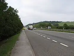 At the point where the railway crosses under the A1, is the corner of two other districts – Rutland and North Northamptonshire. The boundary with Rutland follows the east side of the A1. Since 1991, none of the A1 bypass is in South Kesteven. The boundary meets that of Great Casterton, and briefly follows the B1081 Ermine Street at Toll Bar. The boundary then follows that of Rutland, crossing the East Coast Main Line at Braceborough and Wilsthorpe and again at Carlby. At Castle Bytham, the boundary follows the east side of the A1, and crosses the A1 at South Witham, where a little further west is a corner with the district of Melton. The boundary follows that of Leicestershire along the former Sewstern Lane, which is now the Viking Way where it crosses the eastern end of Saltby Airfield. The boundary deviates from the Viking Way at Woolsthorpe-by-Belvoir where it briefly follows the River Devon. It crosses the A52 and railway at Sedgebrook. This area is part of the Vale of Belvoir. The boundary then passes through the former RAF Bottesford, where just north it meets the district of Newark and Sherwood (Staunton) at Three Shire Oak. The boundary crosses the A1 at Shire Bridge. It follows Shire Dyke at Claypole, crossing the East Coast Main Line, then briefly follows the River Witham. The north-west corner of the district is on the River Witham at Claypole just south of Barnby in the Willows. Further east, a two-mile section of the A17 skirts the district, just east of Byards Leap.